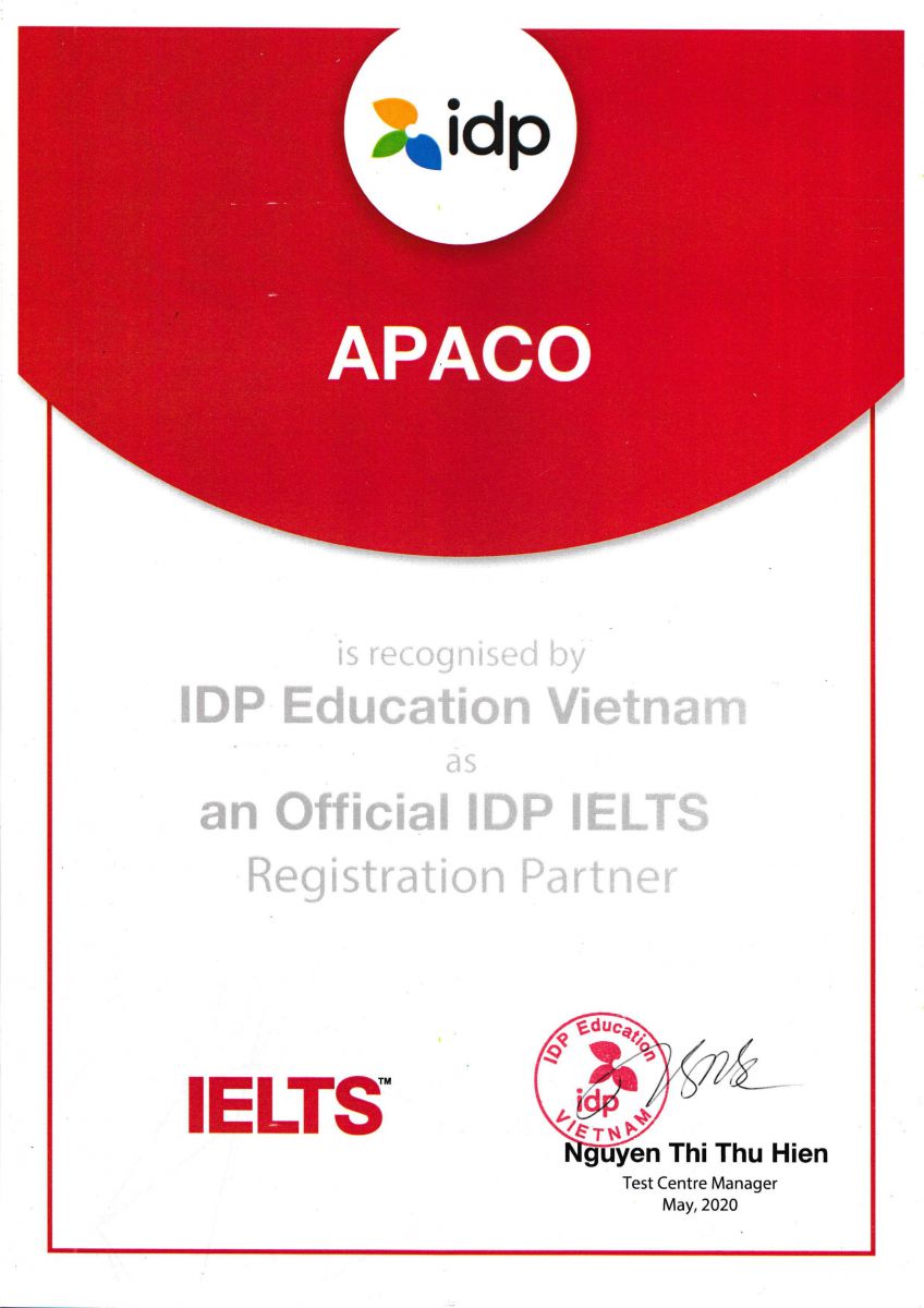 APACO là đại diện chính thức của IDP nhiều năm nay trong việc tổ chức thi IELTS. Đăng ký thi với giá công bố va bằng chứng nhận được nhận chỉ sau 01 ngày