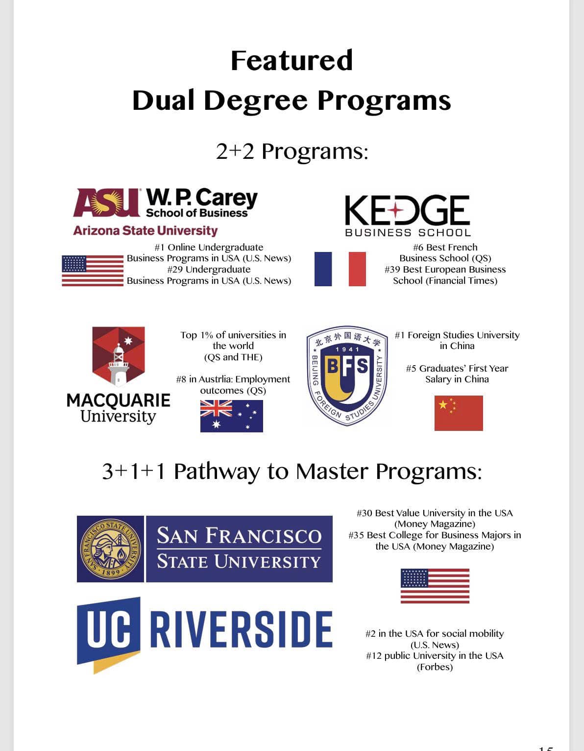 - Đa dạng chương trình bằng kép với các nước Anh, Úc, Mỹ, Canada: Mở rộng cơ hội học tập và làm việc quốc tế.
